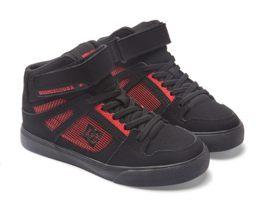 Children's DC Shoes Pure High Elastic Lace Shoes -Black/Black/Red