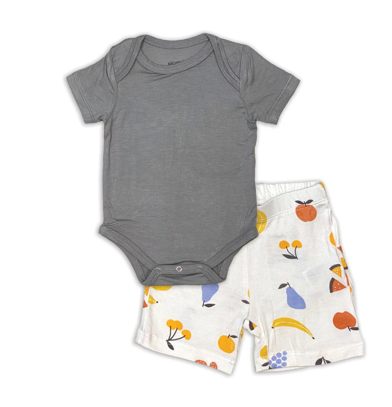 Bamboo Sleeve Onesie & Short Set(Pigeon & Fruit Salad)