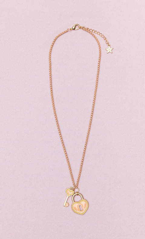 The Boutique Chic Love Unlocked Necklace offers a delightful blend of style and whimsy. With its vibrant pink chain link chain and adorable key and lock charms, it effortlessly adds a pop of colour and charm to any outfit.
