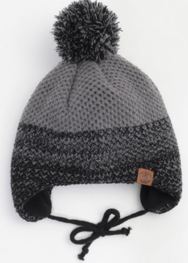 Super warm boys winter hat with ombre knit design and knit pompom detailing.