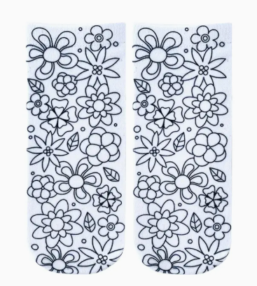 Get ready to color in your world—one step at a time with Living Royal's Coloring Socks! A delightful twist on everyday socks, these ankle socks are designed to be colored on to create your own personal style. Give these to family and friends for a unique and interactive experience that goes beyond traditional sock gifting. A thoughtful gift that combines creativity, comfort, and a personal touch. Includes: - 1 pair of Coloring Socks - 4 Permanent Fabric Markers (Colors may vary)