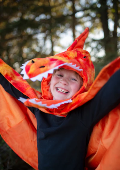 Soar back in time with our Grandasaurus Pterodactyl Cape. This vibrant orange cape features a stuffed headpiece with a long beak, 3D spine, and removable lower jaw to ensure a secure fit.