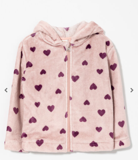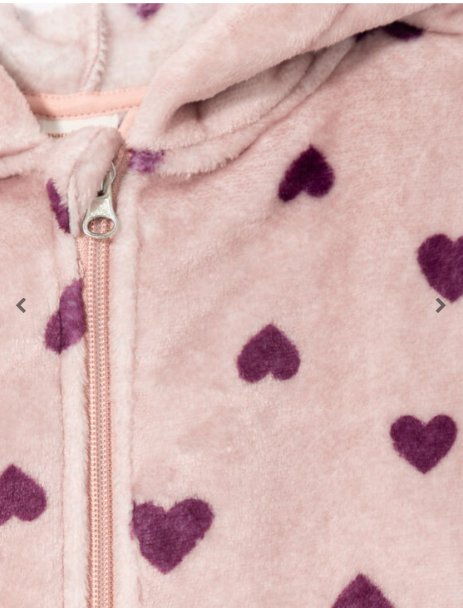 Fall for this cute zip-up hoodie featuring a playful heart print and a hood with little cat ears. Soft and fun, it’s the perfect mix of warmth and charm for your little one’s cooler days.