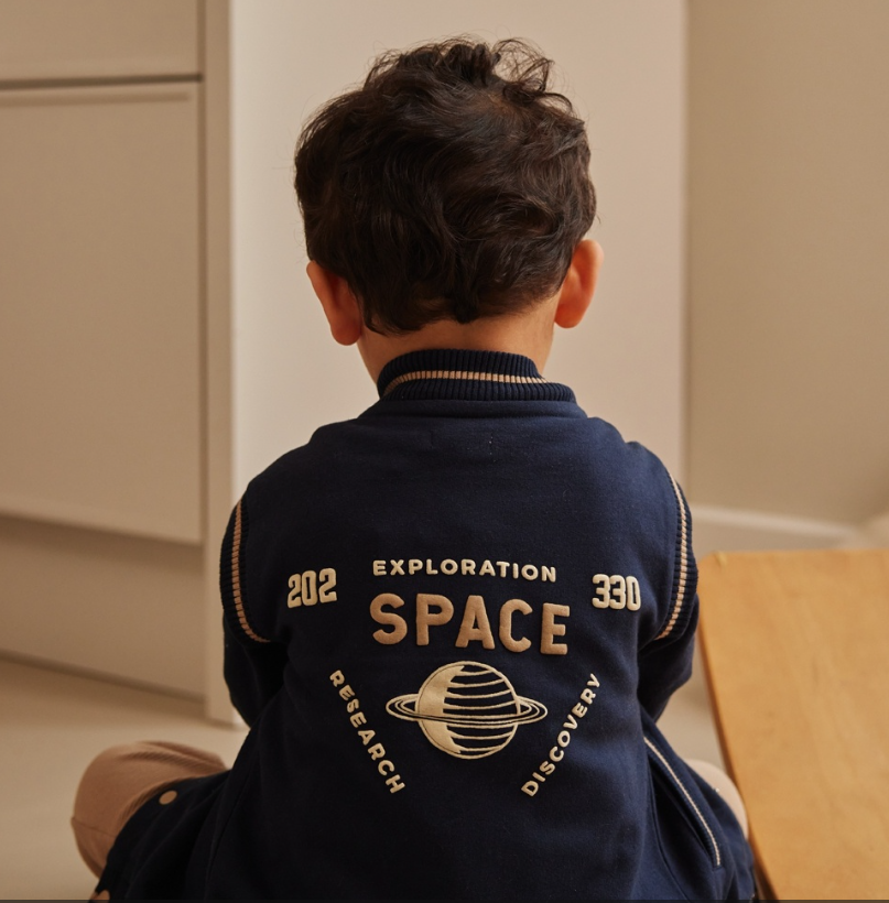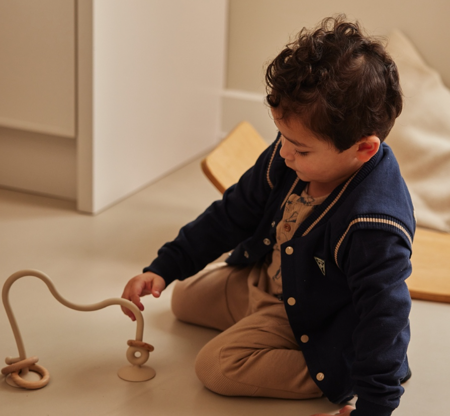 A real favorite for the fall season! This cool Dirkje baseball cardigan in dark blue with taupe colored details is perfect for chilly days. The rib cuffs give the navy boys cardigan a sporty look. Made of 100% cotton for a fine fit. Pair it with the matching Dirkje jogging pants for a complete outfit!