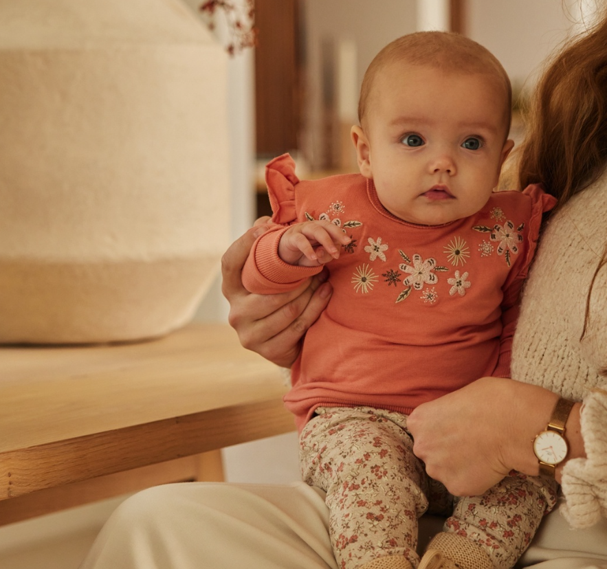 A warm and cute sweater with embroidered florals - perfect for chilly days! This pink Dirkje girls sweater is decorated with embroidered flowers and cute ruffles across the shoulders. The soft cotton with stretch ensures a nice fit, while the button at the neck makes it easy to put on and take off. Pairs nicely with pants or skirts.