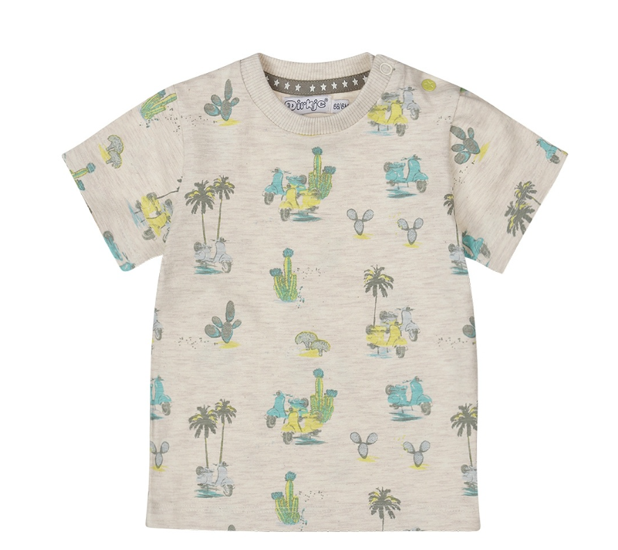 Let your little one shine in this summery Dirkje T-shirt. This off white melange shirt features a cheerful print including cactuses and vespas, making it perfect for sunny days. Made from soft, breathable fabric, it offers ultimate comfort. Pair this T-shirt with shorts from the Dirkje collection for an instant summer vibe.