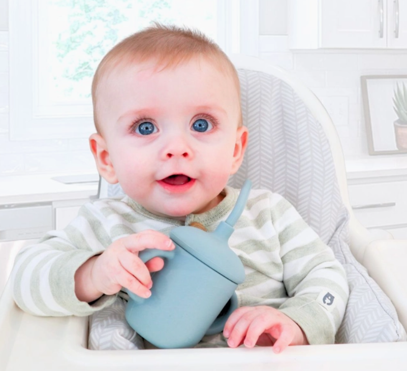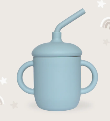 This silicone spill proof sippy cup is made with a curved straw and double handles. Excellent for helping babies transition from bottle to a sippy cup with straw. Spill proof for all adventures; it offers peace of mind during tumbles or falls. Designed with an easy twist-on lid and features soft, ergonomic handles with enhanced grip to prevent slips and spills.