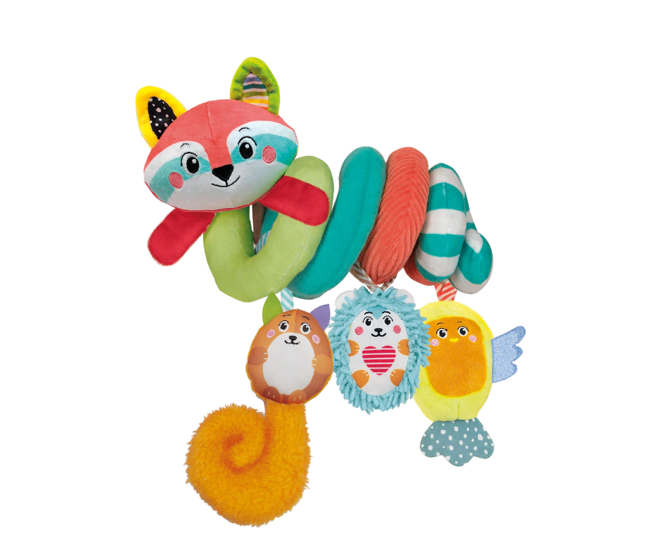 The adorable raccoon and his friendly forest friends form a soft stroller spiral that will entertain the child thanks to the different materials and rattles in the hangers. The gentle squirrel has a soft tail with a sound effect, and the hedgehog and bird have a rattle inside. Stimulates manual dexterity, visual and auditory perception. Spiral to wrap around the stroller, but also on the bed or to take with you at all times! Ideal for baby's first few months of development.