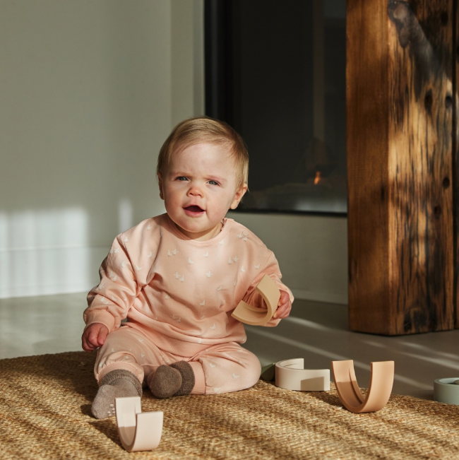 Sweet and comfortable: this Dirkje girls set is perfect for your little one! The light pink sweater and sweatpants are made of wonderfully soft cotton with stretch, so your child can move freely. The set has an adorable all-over print with ducks and fine details like a soft elastic waistband and handy snap buttons on the shoulder. A must-have for every baby wardrobe!