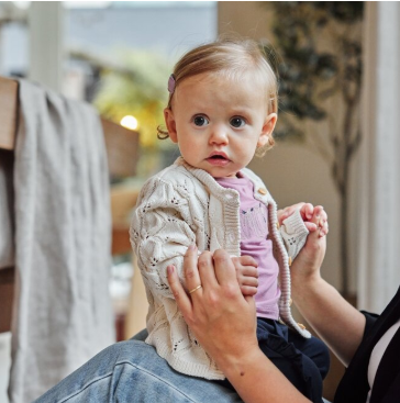 This knitted cardigan by Dirkje in the color off white will instantly give your little one's winter wardrobe a stylish upgrade! The open knitted pattern and buttons give the cardigan an elegant look, perfect for the season. This girls cardigan is ideal to pair with a pretty dress or long sleeve for a cozy, layering look.