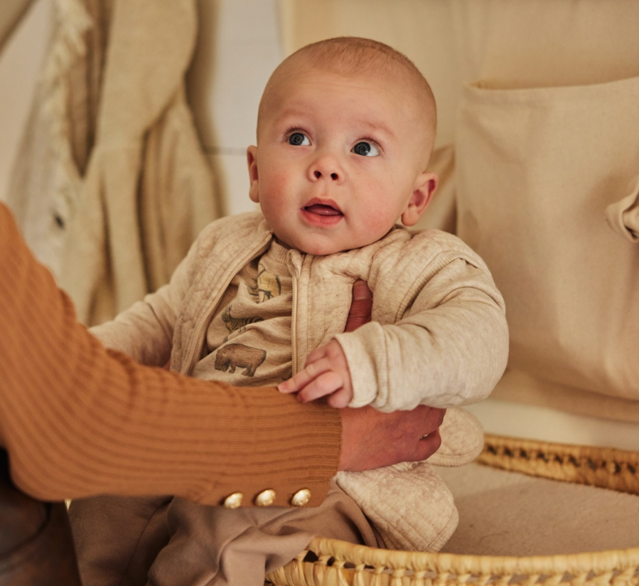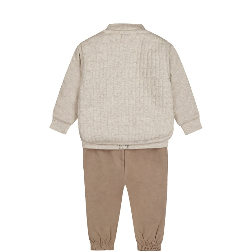 This Dirkje boys set is the perfect choice for fall and winter. The cardigan in gray-brown melange has a nice texture in the fabric and is wonderfully warm. The matching longsleeve with a cool wild animal print completes the set. The soft jogging pants in soft brown have an elastic waistband and elastic at the legs for extra comfort and a perfect fit. The ideal set for your little one to play and be comfortable in!